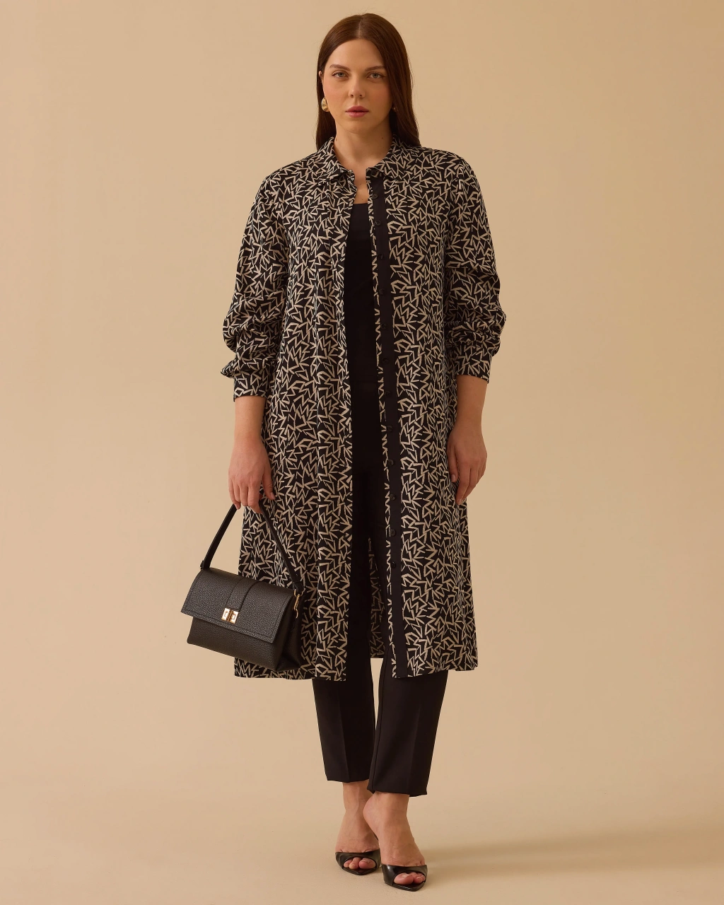 Büyük Beden Desenli Cepli Tunik, rahat kesimi ve kullanışlı cepleriyle günlük şıklık ve konfor sunar.
