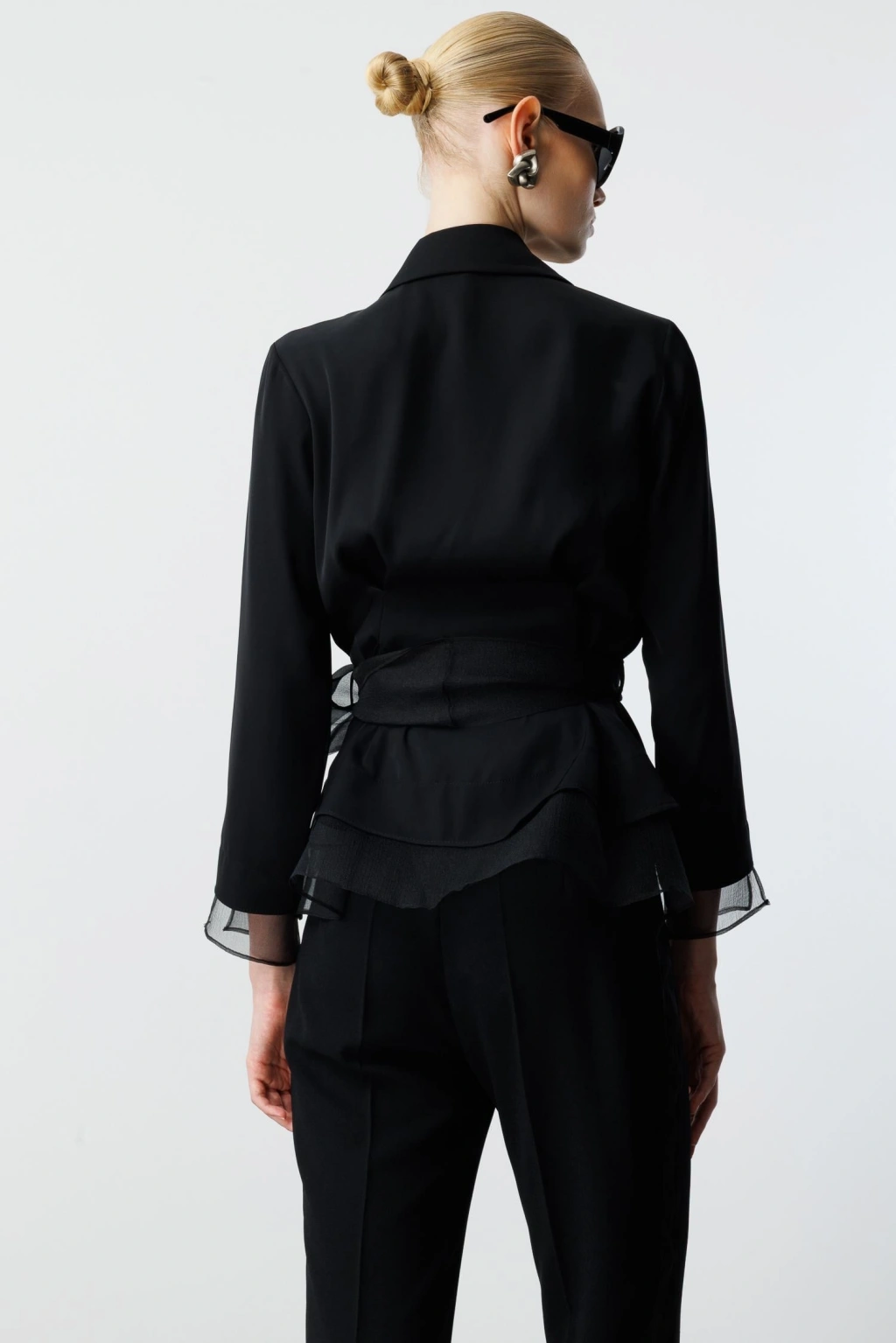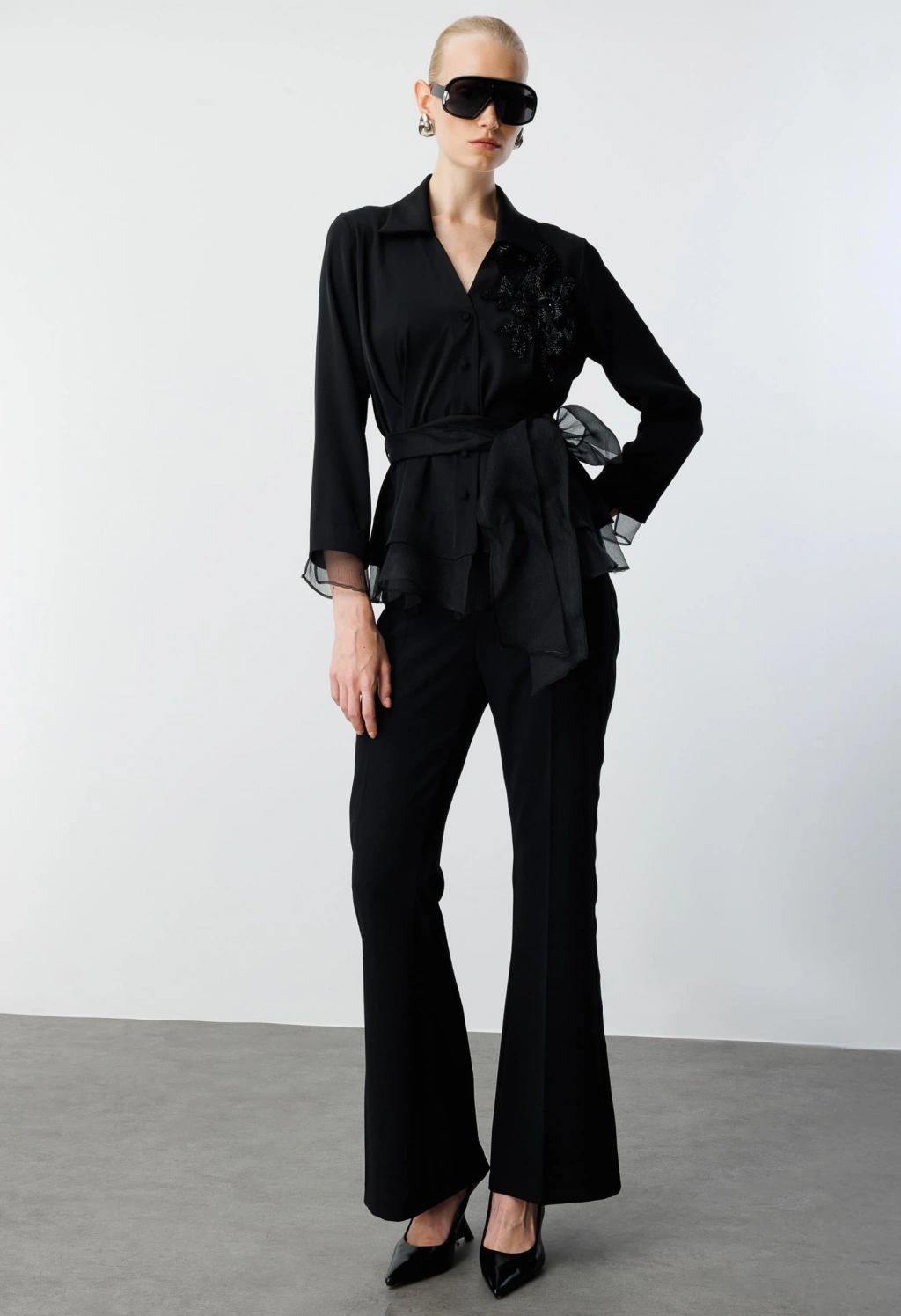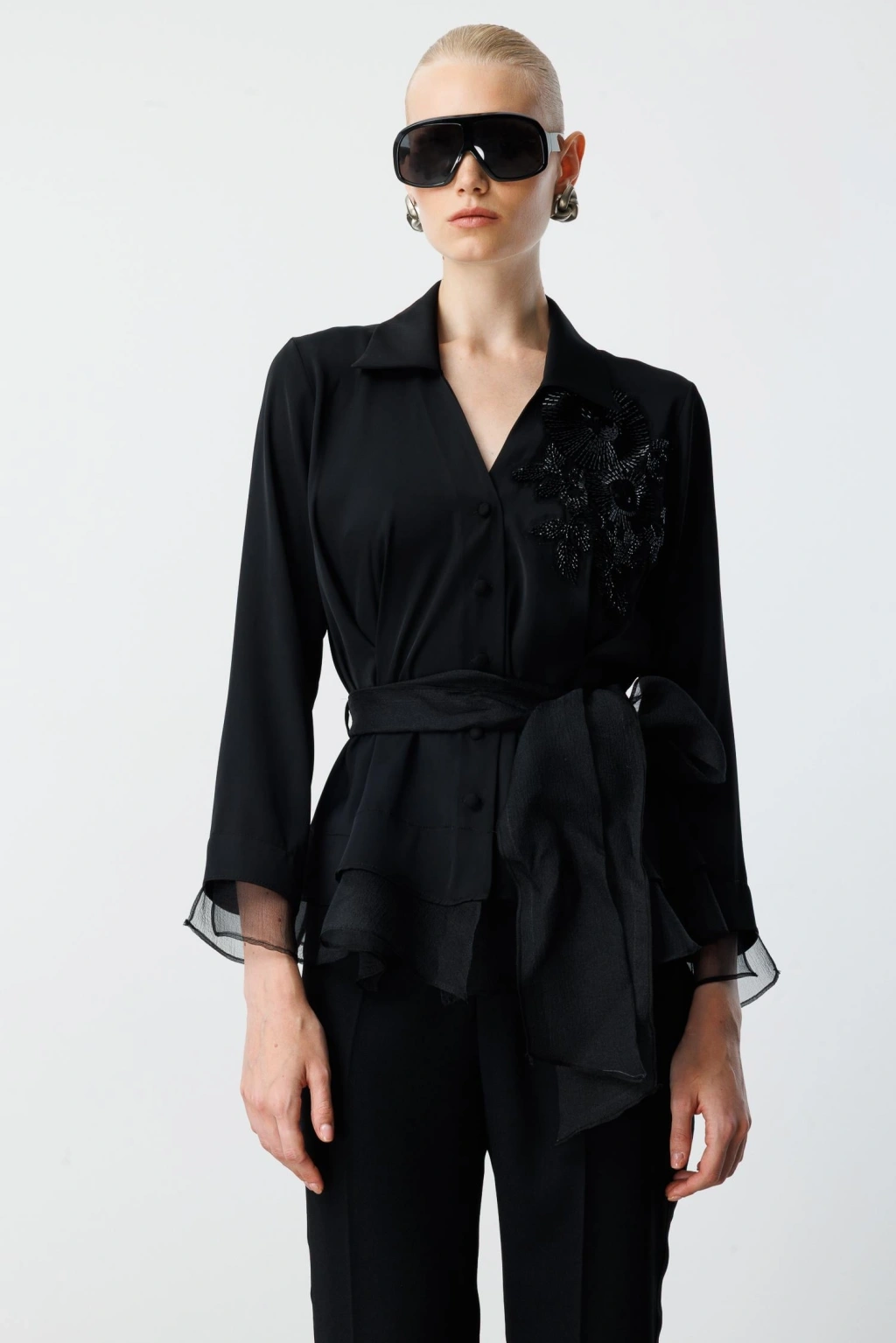 Organze tüllü gömlek, çiçek desen işlemeleriyle feminen çizgide